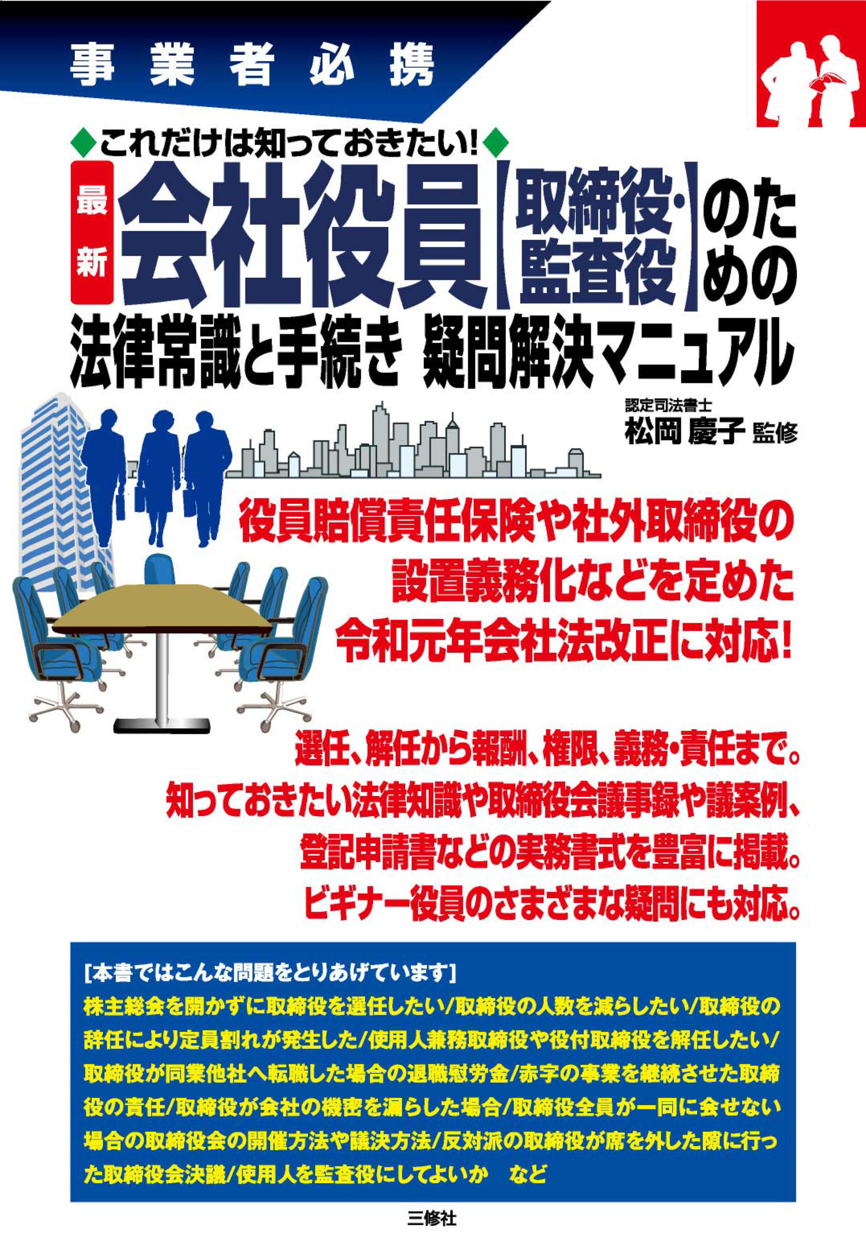 事業者必携 これだけは知っておきたい! 最新 会社役員【取締役・監査役】のための法律常識と手続き 疑問解決マニュアル